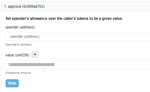 Naszym oczom powinny ukazać się dwie rubryki do wypełnienia: spender (address) oraz value (uint256).
