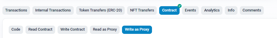 Kolejnym krokiem jest wybranie zakładek Contract -> Write as Proxy