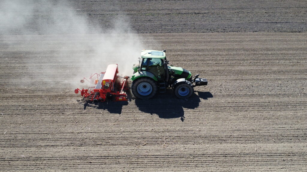 – Znajdujemy się w Grudyni, gdzie siejemy soję na 123 hektarowym polu. Temperatura gleby jest odpowiednia, wynosi ponad 12 stopni. Jedyne czego by się chciało więcej, to wilgoci w glebie. Niestety gleba jest bardzo mocno przesuszona, dlatego powiększyliśmy troszeczkę głębokość siewu do około 3-4 centymetrów. Planuje też po siewie wykonać wałowanie jeszcze przed opryskiem doglebowym, żeby zwiększyć podsiąk, żeby troszeczkę więcej zatrzymać tej wilgoci w glebie.