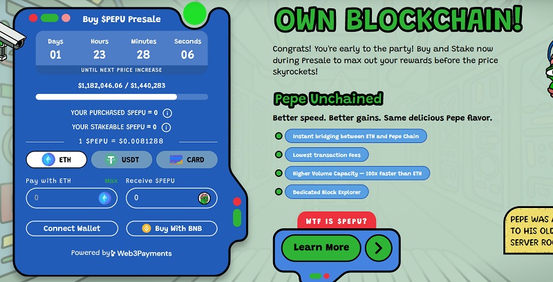 Minie jeszcze nieco czasu, zanim tokeny $PEPU trafią do publicznej emisji. Wciąż trwa faza przedsprzedaży i już teraz wiadomo, iż zakończy się ona sukcesem. Otóż w krótkim czasie twórcy zebrali blisko 1 200 000 USD.