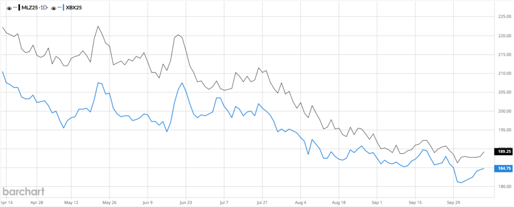 W USA krajowe prognozy wskazują na nieco niższe plony kukurydzy i soi od tych zawartych we wrześniowym raporcie USDA. Wspiera to nieco notowania obu upraw w Chicago. W przypadku amerykańskiej kukurydzy średnie oczekiwania wskazują na plony na poziomie 185 bu/akr, w porównaniu z 186,7 bu/akr w raporcie wrześniowym. Dla soi prognoza wynosi 53,2 bu/akr, co stanowi nieznaczny spadek w porównaniu z 53,5 bu/akr z poprzedniego miesiąca. Te korekty w dół częściowo wspierają ceny, choć dopiero oficjalna publikacja USDA pozwoli ocenić rzeczywistą skalę spadku plonów i zbiorów.