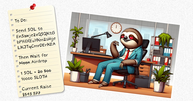 Slothana ($SLOTH) to całkowicie nowy token memowy w ekosystemie Solany. Jednak już teraz widać, iż moneta może osiągnąć sukces. Wskazuje na to duże zainteresowanie tokenami, ponieważ zaledwie w kilkanaście godzin twórcom udało się już zebrać blisko 550 000 USD.