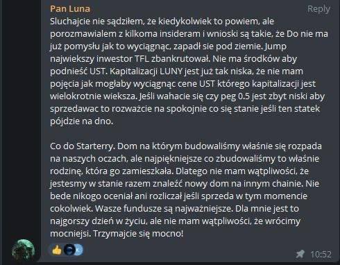 Nikt nie powiedział, iż wszystko musi mieć dobre zakończenie, w moim odczuciu takiego dobrego zakończenia nie doczekają polskie projekty oparte na łańcuch Terra. Osobiście szczerze współczuję wszystkim tym, którzy stracili na nich pieniądze i mam nadzieje, iż uda się wam je odrobić najpóźniej w kolejnej hossie.