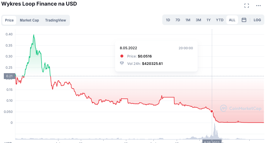 (źródło: link) Zarówno Luna jak i projekty działające przy jej wykorzystaniu w przeciągu kilku dni straciły całą swoją kapitalizację.