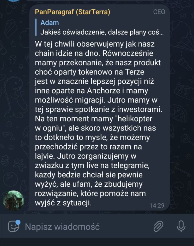 W niniejszym artykule postaram się opisać działanie kilku największych polskich projektów zbudowanych w oparciu o łańcuch Terra, a także zastanowić się, czy ich upadek spowodowany był implozją całego ekosystemu, czy może grunt pod niego został przygotowany już dużo wcześniej. Mowa będzie oczywiście o platformach takich jak: Starterra, Terra Land i Robohero. Na wstępie chciałbym zaznaczyć, iż artykuł ten nie jest atakiem ani na twórców opisanych przedsięwzięć, ani na rzeszę osobowości z polskiego świata kryptowalut, które je promowały. Został on napisany wyłącznie jako podsumowanie ich dotychczasowej aktywności i wyników.