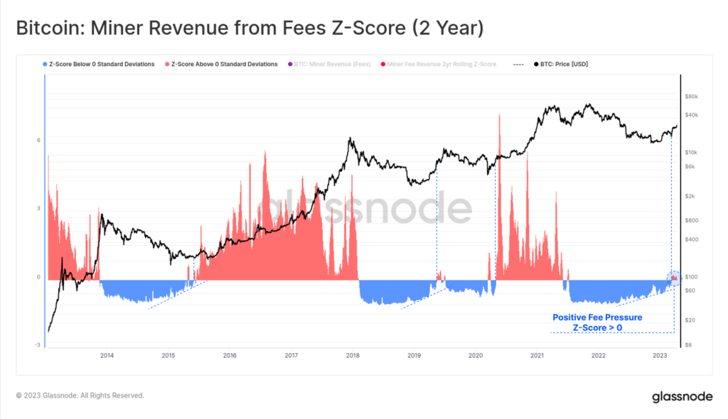 Źródło: GlassnodeZe zwiększoną aktywnością on-chain, przychodzi presja na opłaty. 2-letni Z-Score jest zaprojektowany przez Glassnode tak, iż wzrost presji na opłaty w stosunku do ostatniej bessy będzie się wyróżniał. w tej chwili jest pozytywny, co sugeruje, iż zapotrzebowanie na przestrzeń blokową Bitcoin wzrosło o znaczącą ilość.