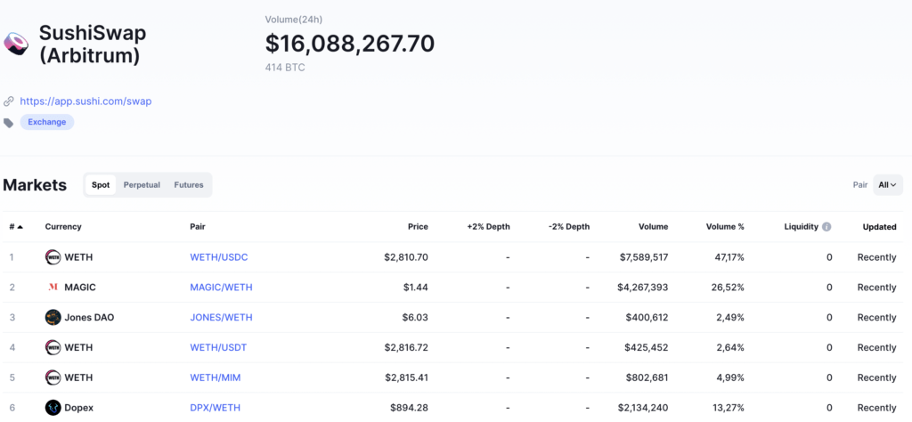Jest to drugi najchętniej tradowany token na sieci Arbitrum.