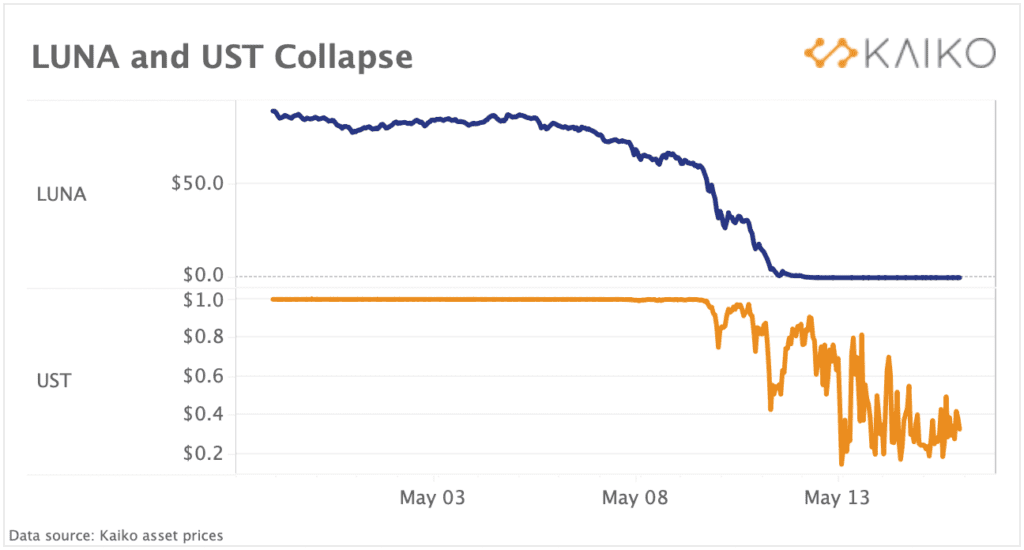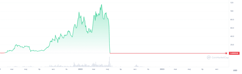 Algorytmiczny stablecoin TerraUSD, w tej chwili przemianowany na TerraUSD Classic (USTC), stracił powiązanie z dolarem amerykańskim („peg”) w maju 2022 r., powodując gwałtowny spadek jego wartości z 1 USD do 0,02 USD oraz pociągając za sobą cały ekosystem Terra skupiony wokół kryptowaluty $LUNA. Podczas gdy Terraform Labs początkowo przypisywał deprecjację niestabilności algorytmicznej, firma twierdzi obecnie, iż prominentni uczestnicy rynku zaangażowali się w skoordynowaną krótką sprzedaż stablecoina, celowo powodując jego deprecjację wkręcając go w spiralę bez wyjścia.