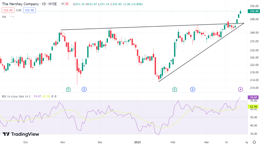 Jest to jeden z największych producentów czekolady i słodyczy na świecie. Firma została założona w 1894 roku i w tej chwili jest komponentem indeksu S&P 500. Najważniejszą marką jest czekolada Hershey’s. Oprócz tego spółka posiada licencję na produkcję batonów Kit Kat w Stanach Zjednoczonych.