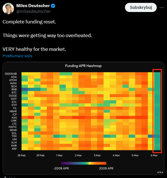 Nie wszyscy jednak uważają to za zły znak. Miles Deutscher, popularny analityk krypto, uznał to za doskonały omen: wyczyszczono bowiem z rynku chciwość i stworzyło warunki pod, jego zdaniem, dużo bardziej zdrowe wzrosty.