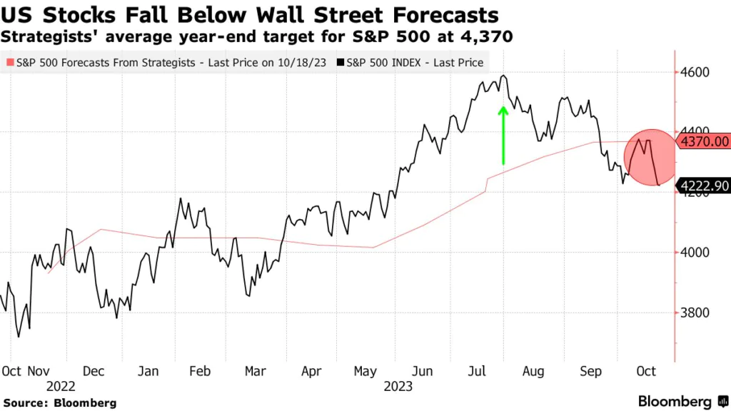 Według informacji platformy Bloomberg, główny strateg rynku akcji w Stifel, Barry Bannister dołączył do szerokiego już grona rynkowych niedźwiedzi. W jego ocenie nie należy oczekiwać w najbliższym czasie dużych wzrostów na rynku akcji w USA. W pierwszej połowie roku przewidział rajd. Znów ma rację? Indeks S&P 500 osiągnął latem szczyt. Bannister uważa, za bardzo mało prawdopodobne, aby w ciągu najbliższego pół roku benchmark utrzymał się powyżej poziomu 4,000 pkt. Dlaczego? Ponieważ wyższe stopy procentowe w końcu wpłyną na wzrost zysków spółek giełdowych. Zatem wg. Bannistera rajdu św. Mikołaja nie będzi. , według głównego stratega akcji Stifel, Barry’ego Bannistera.