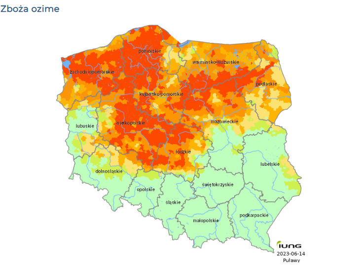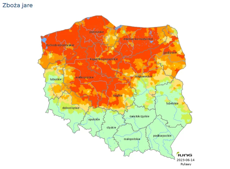 Susza zbóż jarych w Polsce. Źródło: IUNGNiższe plony i deszczu brak