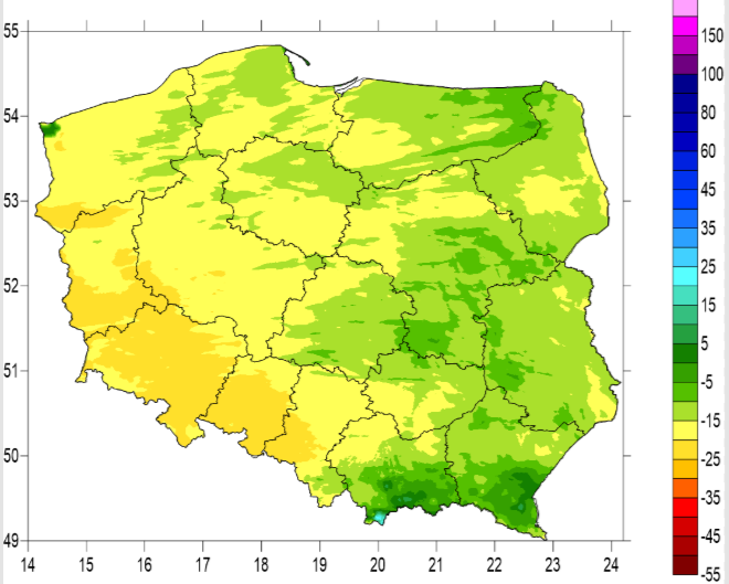 Oznacza to, iż gleba systematycznie traci wilgoć, a deficyt wody narasta. Tymczasem wiosenne prace polowe przyspieszają, więc zapotrzebowanie na wodę rośnie. Jednak brak opadów ogranicza dostępność wilgoci, dlatego warunki dla roślin są generalnie niekorzystne.