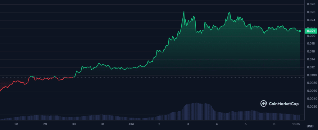 Notcoina wprowadzono ostatnio na kilka największych parkietów w sektorze, w tym Binance, OKX, Bybit i Bitget. „Obecność na tych platformach znacznie zwiększa dostępność i zaufanie do Notcoina,” mówi Lee. „Jego cena doświadczyła znacznej zmienności, ale ogólny trend jest wzrostowy. w tej chwili Notcoin kosztuje około 0,021 USD.”