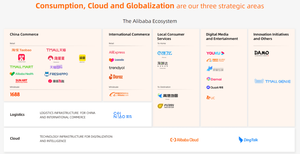 Alibaba nie działa tylko w Chinach. gwałtownie postanowiła dokonać ekspansji na rynki zagraniczne. Przykładem jest AliExpress, który na wielu rynkach w Europie ma bardzo silną pozycję. Jest też Lazada, która działa na rynku Azji Południowo – Wschodniej. Alibaba to także logistyka, usługi chmurowe czy działalność na rynku mediów i rozrywki.