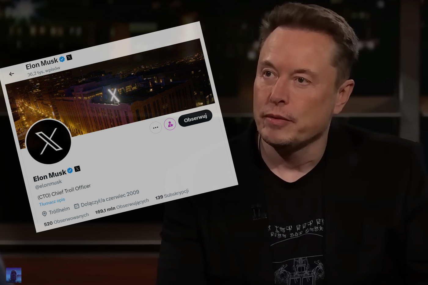Kilka dni temu szef SpaceX i Tesli wprowadził zmiany w swoim biogramie na X – zmienił swój opis na „CTO” i zdefiniował ten skrót jako „Chief Troll Officer”. Podał również swoją lokalizację: „Trollheim”.