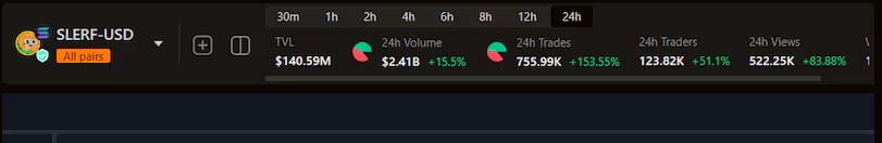 Więcej ich nie będzie. Czy to wystarczy, by przynieść inwestorom górę złota? Czy może chciwi znów skończą pod kreską? Kapitalizacja SLURF wynosi już ponad 500 mln USD. Jedno jest pewne: dzisiejsza sesja poruszyła wyobraźnię. Jej popularność wzrosła po tym, jak deweloper projektu powiedział, iż przypadkowo wysłał wszystkie zebrane fundusze na adres spalenia. To doprowadziło do szalonego rynku i wzrostu cen. Popyt na memcoiny jest szalony, o czym dobitnie świadczy powyższy przypadek wolumenu obrotu. W godzinach azjatyckiej sesji projekt odnotowal 2,7 mld USD obrotu wg. danych z DEXScreener. Z kolei aplikacje giełdowe na Ethereum przetworzyły 2,3 miliarda dolarów skumulowanego wolumenu, jak pokazują dane DefiLlama. Jest to całkowita liczba wszystkich transakcji rozliczonych na blockchainie, takich jak te z aplikacji handlowych, pożyczkowych i pożyczkowych.