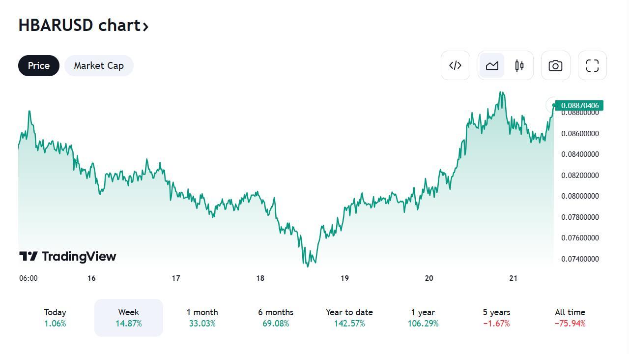 Hedera (HBAR) niedawno pogłębiła swoje partnerstwo z HBAR Foundation, koncentrując się na ulepszaniu stakingu i tokenizacji. Rozszerzone partnerstwo i skupienie się na stakingu i tokenizacji prawdopodobnie będą miały pozytywny wpływ na pozycję rynkową Hedera (HBAR). Inwestorzy instytucjonalni mają teraz możliwość zarabiania na swoich zasobach Hedera (HBAR), co może zwiększyć popyt i wartość Hedera (HBAR) na rynku.