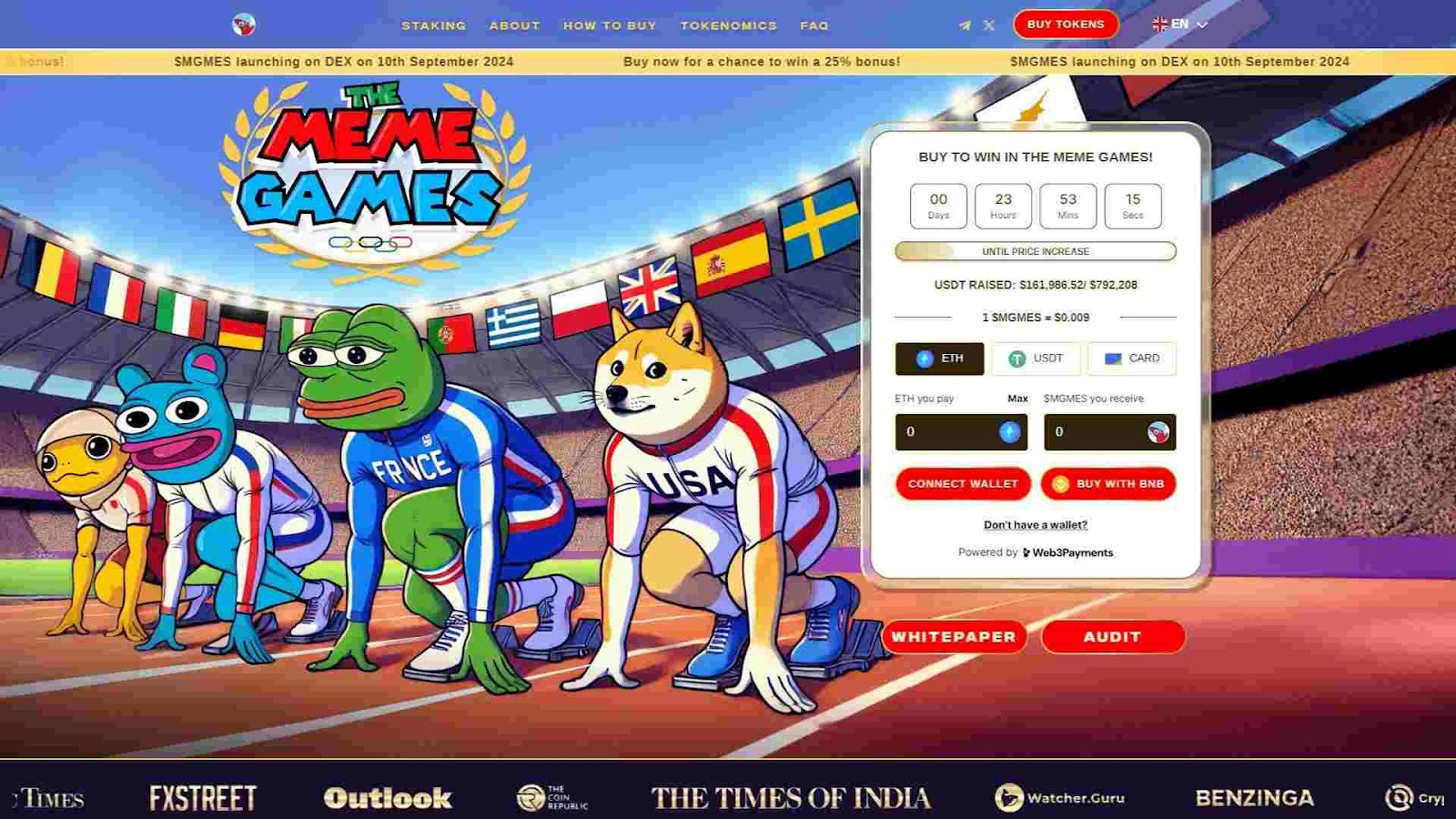 Fot. materiały partneraThe Meme Games jest nowym projektem krypto, który łączy w sobie humorystyczny charakter memów z rywalizacją inspirowaną igrzyskami olimpijskimi. Uczestnicy biorą udział w olimpiadzie poprzez zakup tokenów MGMES podczas przedsprzedaży i wybór swojego reprezentanta. W zawodach walczą Dogecoin, Pepe, dogwifhat, Brett i Turbo.