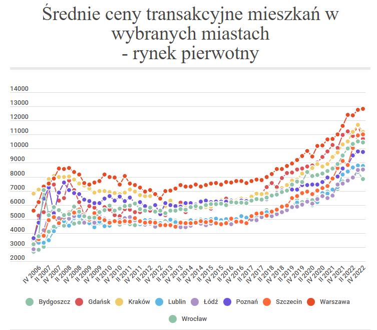 — Darek Dziduch (@DarDzid) March 2, 2023W przypadku rynku pierwotnego warto też zwrócić uwagę na fakt, iż średnie ceny transakcyjne na poziomie miasta mogą zmieniać się przez wprowadzanie do sprzedaży mieszkań o różnym standardzie. W przypadku sprzedaży nieruchomości o wyższym standardzie, średnia cena transakcyjna w danym okresie wzrośnie, a w przypadku nieruchomości o niższym standardzie, średnia cena będzie niższa.