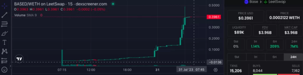 Tym, co naprawdę przyciągnęło uwagę społeczności kryptowalutowej, był gwałtowny wzrost aktywności związanej z mem-tokenami na BASE. Memecoiny takie jak $BALD, $COIN i $BASED odnotowały bezprecedensowe wolumeny obrotu na platformie. Spekulanci dobijali się do drzwi zdecentralizowanej giełdy (DEX) o nazwie LeetSwap, aby tylko urwać dla siebie kawałek tortu. Dane portalu analitycznego DEX Screener wskazują, iż na giełdzie odnotowano 24-godzinny wolumen transakcyjny w wysokości 236,1 mln USD przy aż blisko pół milionie indywidualnych transakcji.