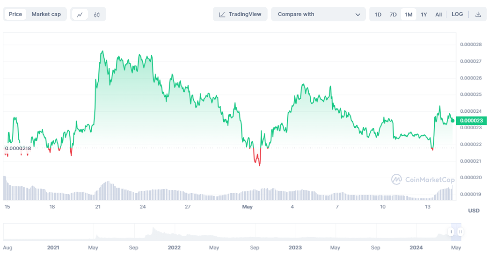 Shiba Inu, która w ostatnim tygodniu zalicza wzrost na poziomie 0.58%, od momentu wprowadzenia w 2020 r., jest coraz chętniej akceptowaną formą płatności na całym świecie.