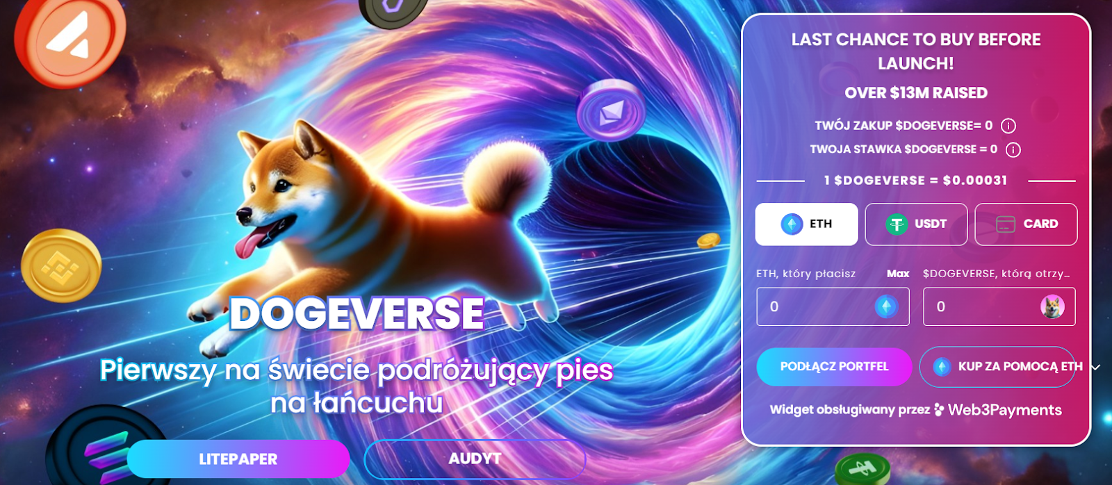 Intrygującą alternatywą dla królującego w rankingach giełdowych Dogecoin, jest Dogeverse od Ethereum. Projekt jest wyjątkowy, bowiem to pierwszy taki token doge na wielu blockchainach jednocześnie, funkcjonujący w oparciu o ekosystem łączacy Ethereum, BNB Chain, Polygon, Solana, Avalanche oraz Base.