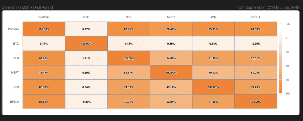 Pomimo notorycznej zmienności cen Bitcoina, Alpha Zeta zauważył, iż korelacja BTC z akcjami Berkshire Hathaway, Microsoft, JP Morgan i BlackRock jest bardzo niska.