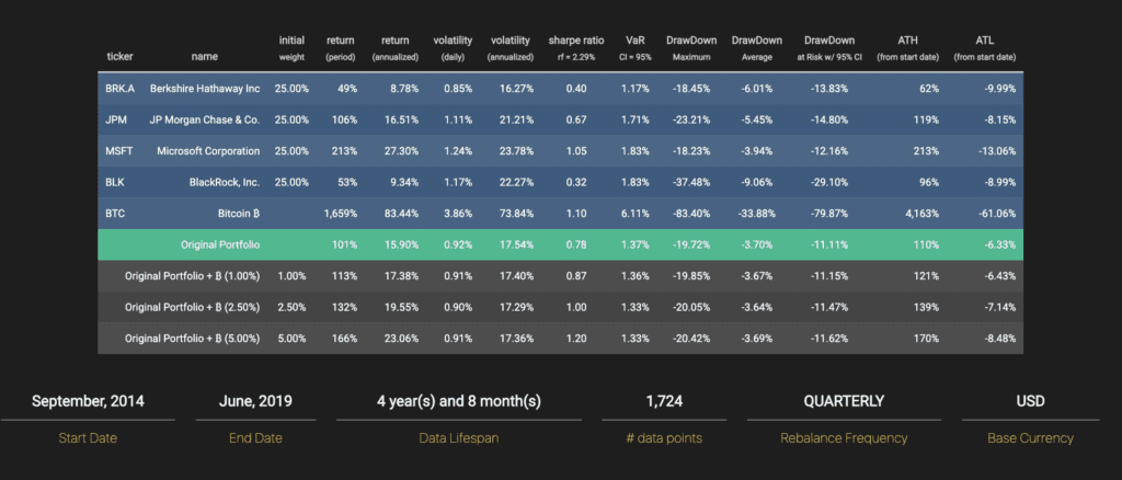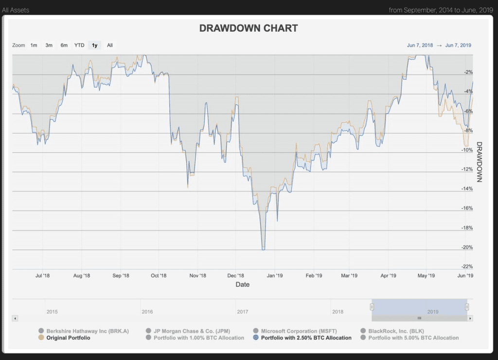 Według niezależnego analityka rynkowego Alpha Zeta, dodawanie tylko 2,5% Bitcoinów rocznie od 2014 roku do głównego portfela zwiększa zyski o prawie 20%. I to przy zmniejszonym ryzyku. Na razie zwrot z portfela wynosi około 16%.