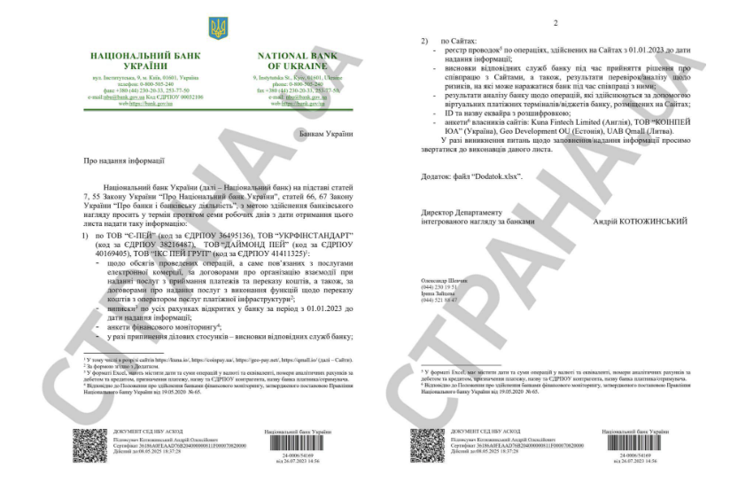 Dokument rozesłany przez NBU. Źródło: TelegramZałożyciel i dyrektor generalny giełdy Kuna, Michael Chobanyan, podzielił się tą informacją na początku lipca. Powołał się on na dokument rozpowszechniony przez ukraiński kanał informacyjny na Telegramie – „Polityka kraju”. Według tego dokumentu, NBU zażądał również od firm kryptowalutowych dostarczenia danych na temat wolumenów działalności. A także informacji o wpływach i wypływach środków finansowych. NBU poprosił także ukraińskie firmy kryptowalutowe o przedstawienie raportów ze wszystkich kont od początku 2023 roku.