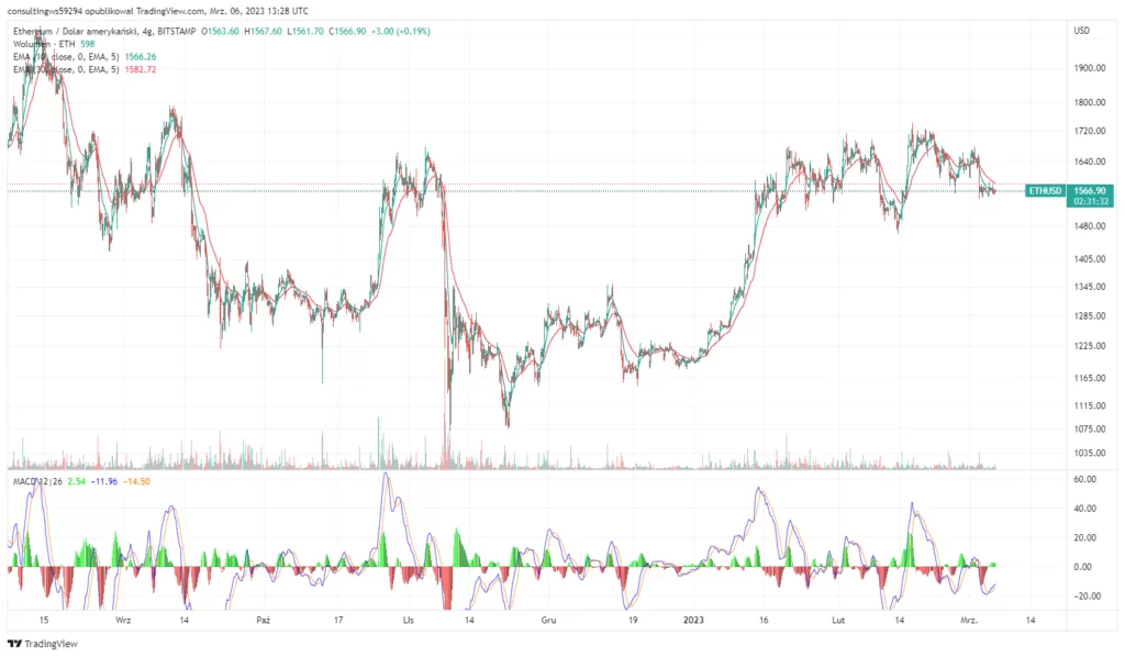 Cena Ethereum spadła o około 5% w ciągu ostatnich 7 dni i w tej chwili wynosi 1564 USD według CMC.