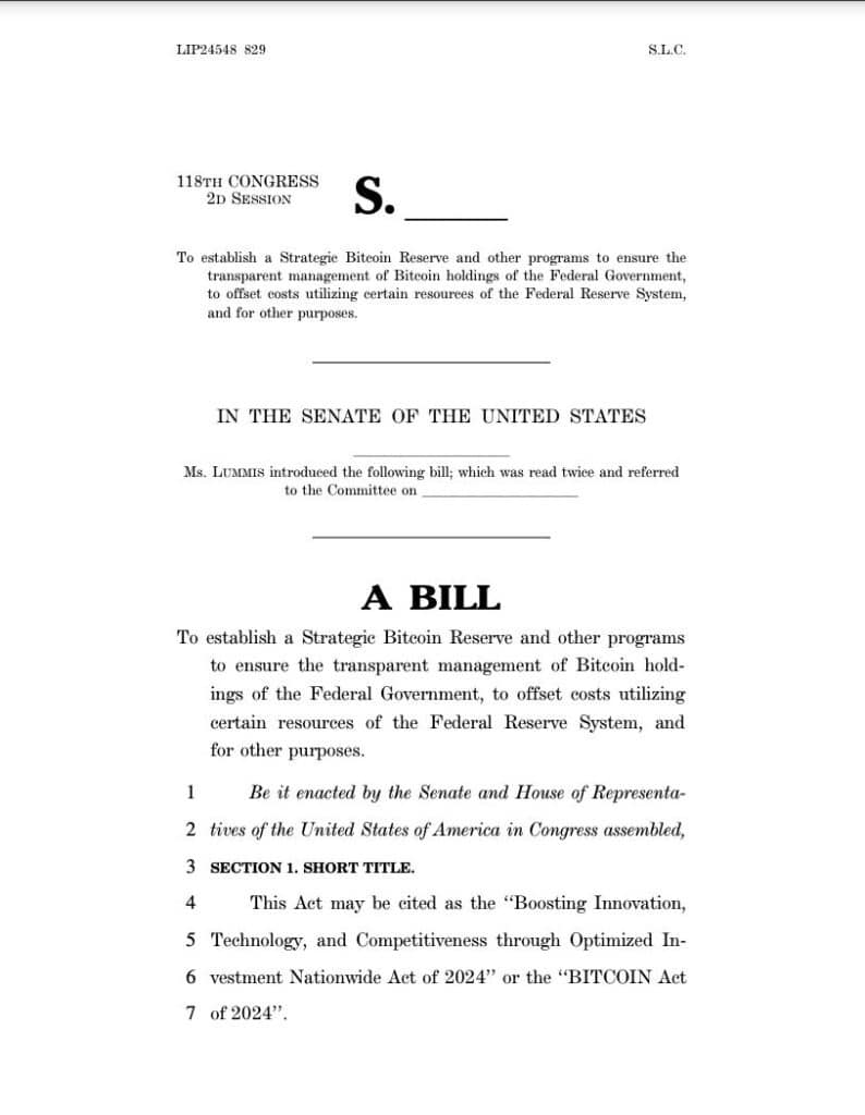 Projekt ustawy (źródło: X)Lummis: „Bitcoin przekształca USA i cały świat”