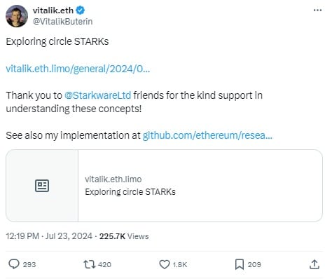 Vitalik Buterin przedstawia protokół Circle STARKs. Co się zmieni?