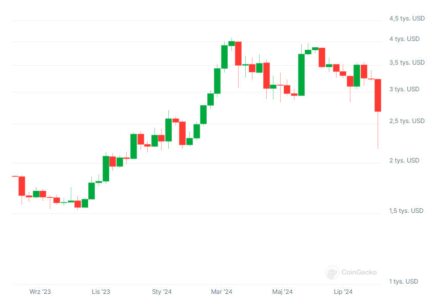 Na moment powstawania tego artykułu kurs Ethereum wynosi ok. 2620 dolarów za sztukę i odbija po potężnym krachu na początku tego tygodnia.