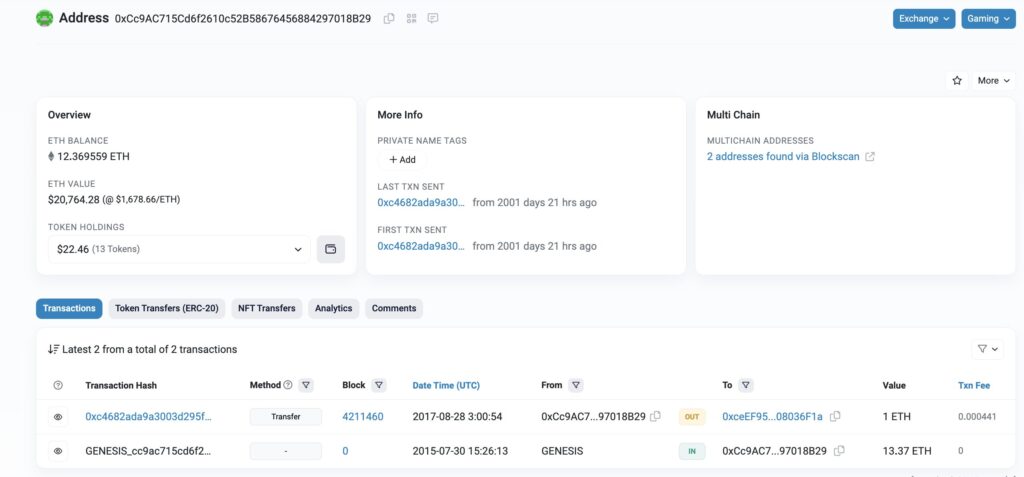 Jak się okazuje, prawie połowa z 17 wymienionych portfeli, a dokładnie siedem z nich, przez cały czas trzyma swoje etery po tylu latach. Ich alokacja za 4 dolary wyniosła 13,37 ETH, a wartość w dolarach wynosi aktualnie ok. 22 tysiące USD.