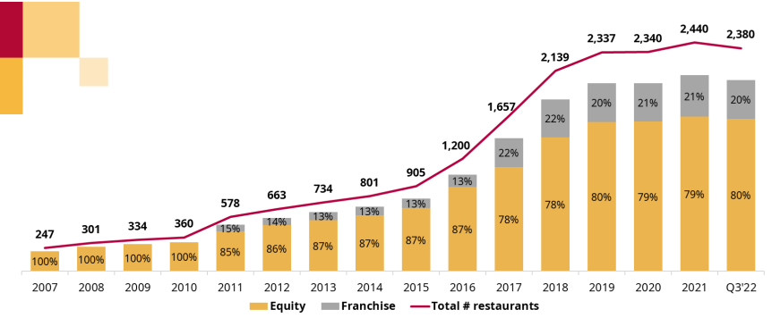 Ostatnie kilka lat to dynamiczny rozwój sieci w Europie i Azji. Między 2017 a 2022 rokiem przychody sieci wzrosły z poziomu 5,26 mld zł do 11,36 mld zł. W tym samym czasie liczba restauracji wzrosła z poziomu 1 657 do 2 346 restauracji.