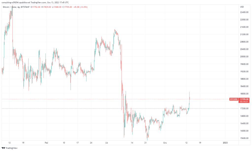 SBF w końcu znalazł się za kratami a BTC wybrał drogę na północ osiągając cenę ponad 18 000 USD.