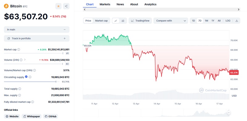 W chwili pisania artykułu cena Bitcoina wynosi około 63 000 USD i jest niższa od wyceny sprzed tygodnia o 8%. To dużo niżej niż ATH z połowy marca, kiedy Bitcoin urósł do ponad 73 000 USD. Natomiast trzeba pamiętać o zbliżającym się czwartym już halvingu BTC, który odbędzie się w okolicach 20 kwietnia. Oznacza to redukcję o połowę liczby możliwych Bitcoinów do wydobycia.