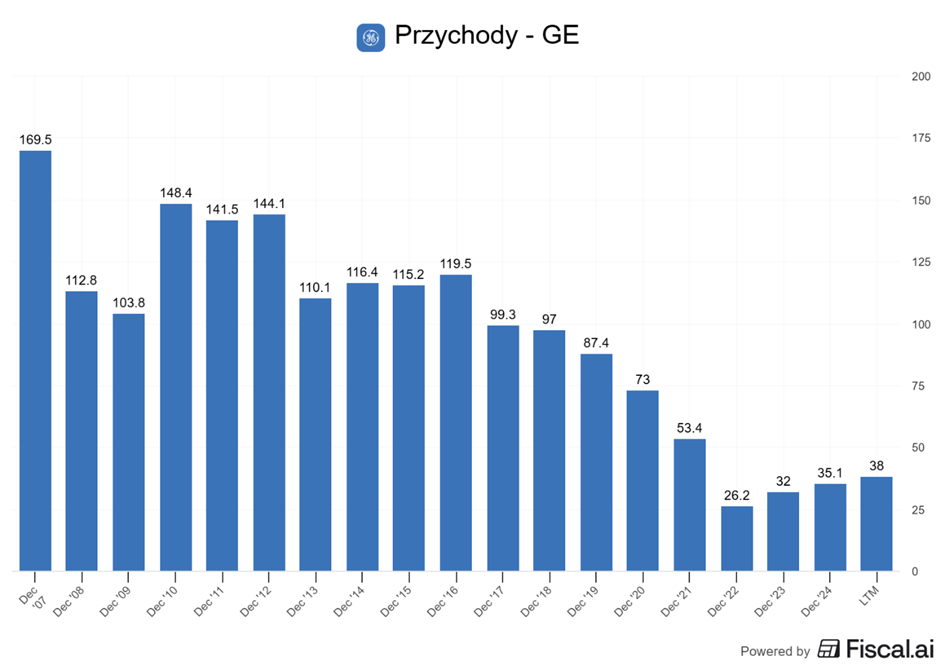 Weźmy na tapet czwartego zawodnika – General Electric. Konglomerat, który się rozpadł. Przez większą część XX wieku General Electric był synonimem amerykańskiego sukcesu korporacyjnego. Firma założona przez Thomasa Edisona rozwijała się od żarówek i silników elektrycznych po lotnictwo, medycynę, media i finanse. W latach 80. i 90. pod rządami Jacka Welcha, GE stało się najbardziej podziwianym konglomeratem świata. Wartość rynkowa firmy osiągnęła niemal 600 mld USD. Jednak to właśnie wtedy zasiano ziarno problemu: przekonanie, iż wielosegmentowy gigant może być skuteczny wszędzie, jeżeli tylko jest dobrze zarządzany.