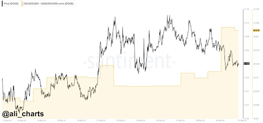 Analityk Ali Martinez ujawnił w poście na X, iż wieloryby Dogecoin (DOGE) kupiły ponad 700 milionów Dogecoinów w ciągu ostatnich kilku dni. Podobnie jak ETFSwap (ETFS), te wieloryby również chcą zająć pozycję przed znacznym wzrostem ceny najważniejszej monety memowej.