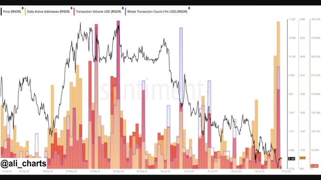 Wzmożoną aktywność sieciową potwierdzają też dane Ali Martineza, analityka kryptowalutowego. W ostatnich dniach na wykresie można zauważyć, iż wieloryby zaczęły przeprowadzać więcej transakcji z udziałem RNDR, co może wskazywać na to, iż trend wzrostowy kryptowaluty dopiero się zaczyna.
