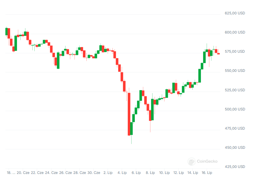 Wykres kryptowaluty BNB, para BNB/USD, źródło: CoingeckoZastrzeżenie: Powyższy artykuł ma charakter informacyjny i nie stanowi porady inwestycyjnej.