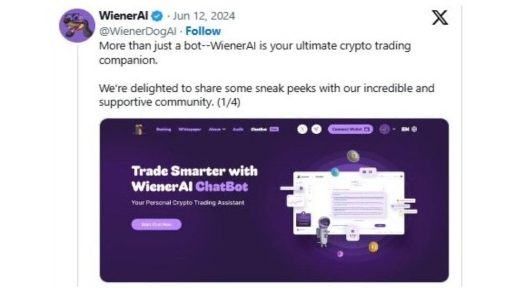 Dzięki swoim modułowym możliwościom technologia WienerAI jest wysoce elastyczna i stale ewoluuje, aby sprostać zmieniającym się warunkom rynkowym. Co więcej, inwestorzy mogą wykonywać transakcje bezpośrednio z interfejsu czatu przy zerowych kosztach, dzięki czemu handel krypto staje się dla nich jeszcze wygodniejszy i bardziej opłacalny.