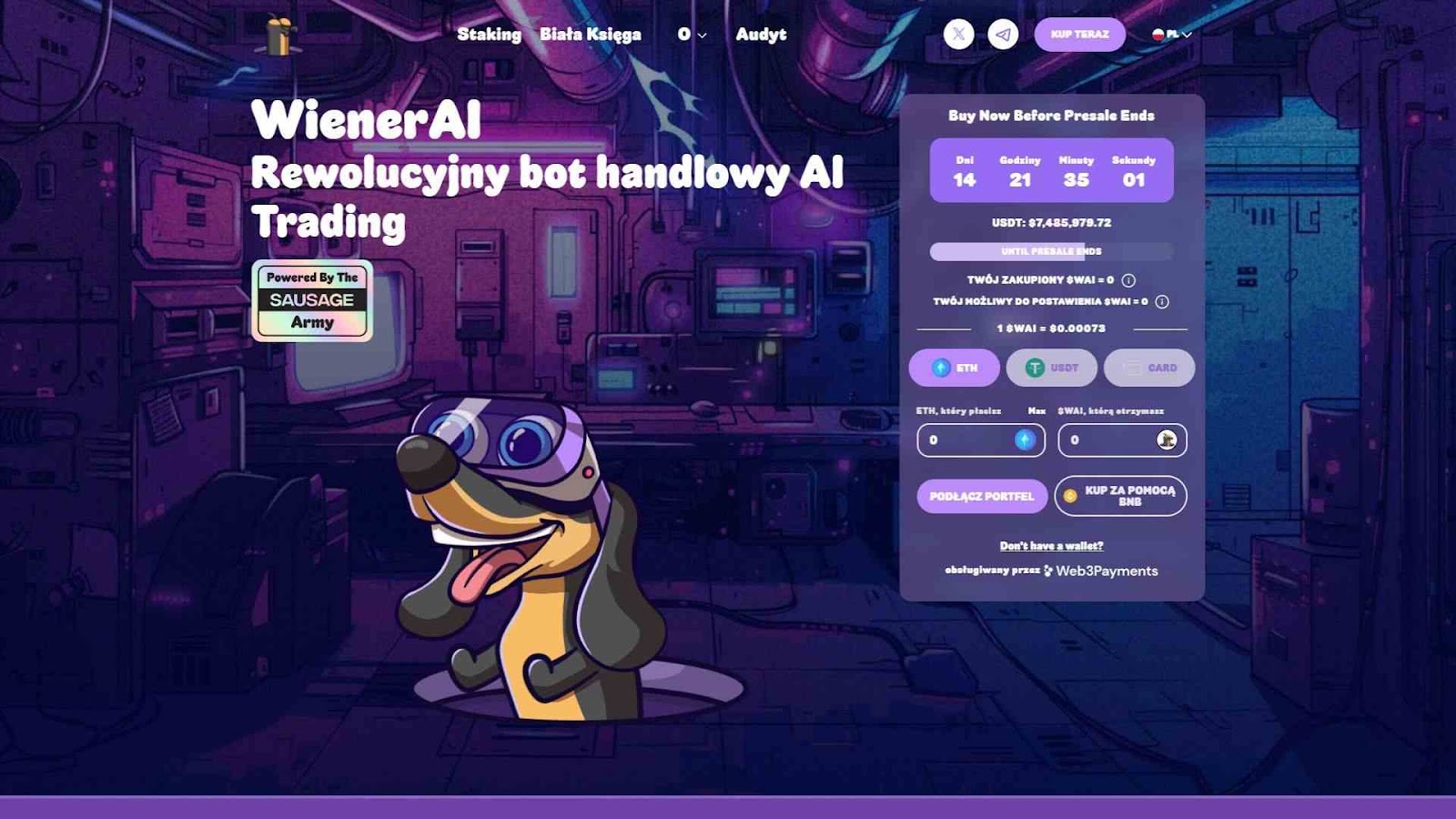 Gdy dodamy do tego imponujące 7,4 miliona dolarów, które udało się zebrać podczas przedsprzedaży, staje się jasne, iż WienerAI ma potencjał do znacznego wzrostu. Inwestorzy, którzy nie zdążyli jeszcze zdywersyfikować swojego portfela tokenami $WAI, wciąż mają na to czas.