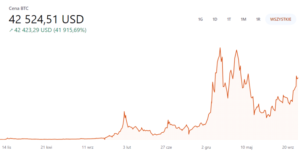 Kurs BTC, fot. CoinbaseScenariusz 2: 5% globalnej lokaty aktywów