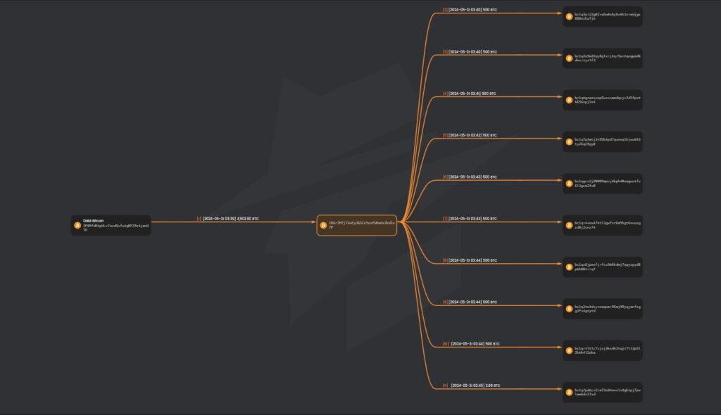 Jak podała firma z zakresu cyberbezpieczeństwa, Blocksec, haker lub hakerzy, kimkolwiek by był lub byli, podzielili łup na dziesięć transz po 500 BTC. Które, po sprawiedliwości, rozdysponowali po równo pomiędzy 10 portfeli kryptowalutowych.