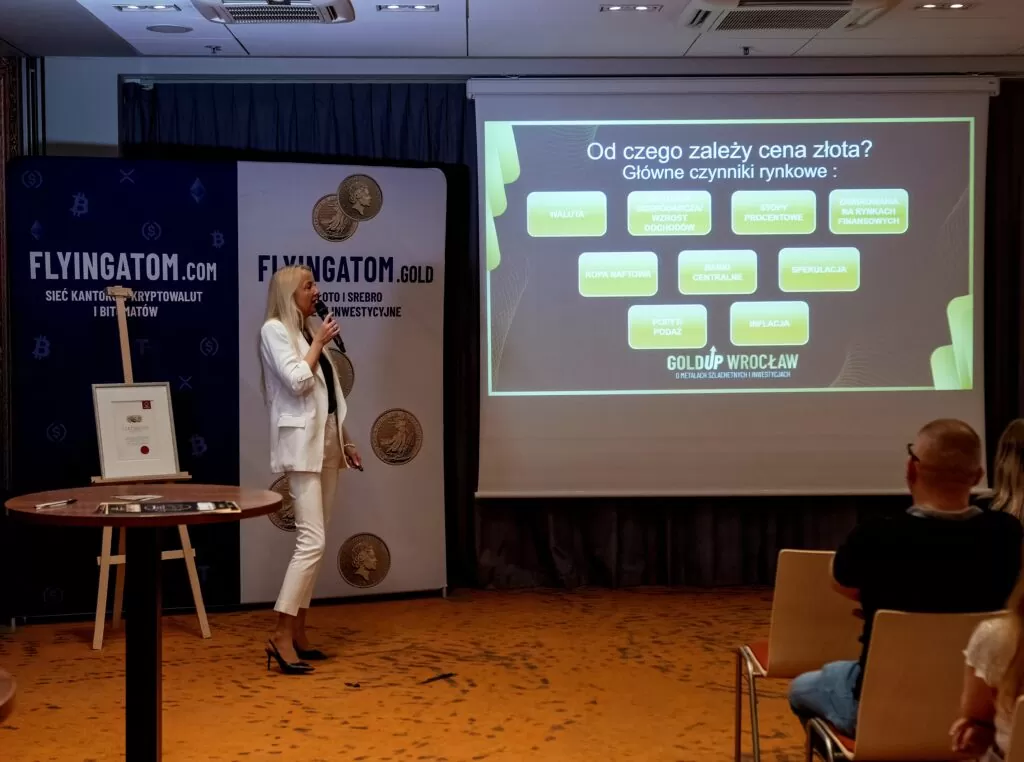 Organizatorzy zgodnie z zapowiedziami przygotowali dla uczestników eventu trzy prelekcje. Pierwszy temat o praktycznym aspekcie inwestycji w złoto przedstawił Nestor Zimny z grupy FlyignAtom.gold. Od Nestora uczestnicy usłyszeli m.in. o adekwatnościach złotych monet i sztabek inwestycyjnych, procesie odsprzedaży czy weryfikacji poszczególnych produktów. Podczas swojego wystąpienia Nestor był zasypywany gradem pytań, na które z ogromną przyjemnością odpowiadał zaciekawionym słuchaczom.