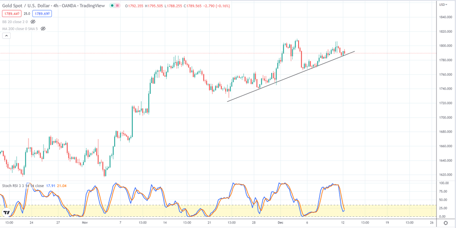Za nami kolejny test poziomu 1800/10 w złocie spotowym. W związku ze środowym posiedzeniem FOMC sensowne jest, aby ceny mieściły się w pewnym przedziale, ponieważ rynek oczekuje komentarzy Jerome’a Powella na temat przyszłej polityki stóp procentowych (podwyżka o 50 punktów bazowych jest szeroko opisywana i oczekiwana). Zdaniem wielu inwestorów uczestnicy powinni pozostać otwarci na rynki, które przyniosą niespodziankę w górę, ponieważ Powell może pójść w ślady prezesa Banku Kanady, Tiffa Macklema, przewidując spowolnienie intensywności podwyżek stóp. Rynki prawdopodobnie zareagowałyby bardzo byczo na gołębi ton, zwłaszcza jeżeli towarzyszyłby mu niezmieniony wykres punktowy.
