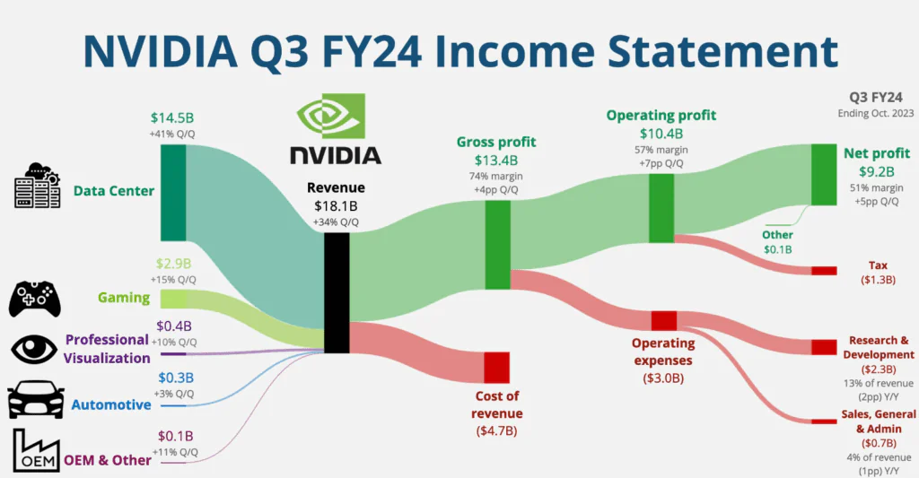 • Revenue +34% Q/Q to $18.1B ($2.0B beat).