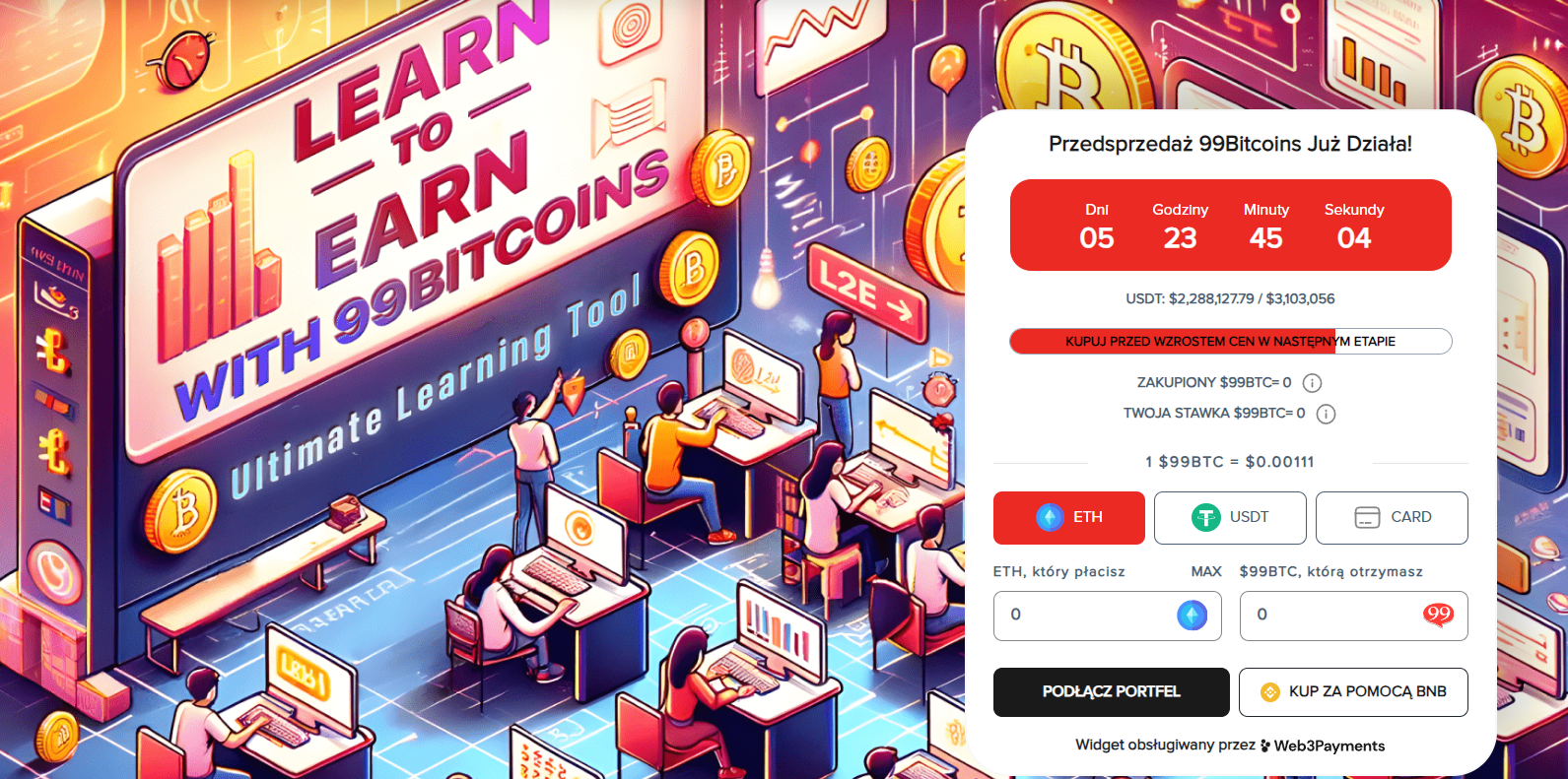 99Bitcoins, platforma oparta na mechanizmie learn-to-earn, wkroczyła w kolejną fazę swojej przedsprzedaży, przekraczając 2,2 miliona zebranych funduszy. Baza użytkowników przekroczyła już 700 tysięcy, z kolei na kursy platformy zapisały się ponad 2 miliony osób.
